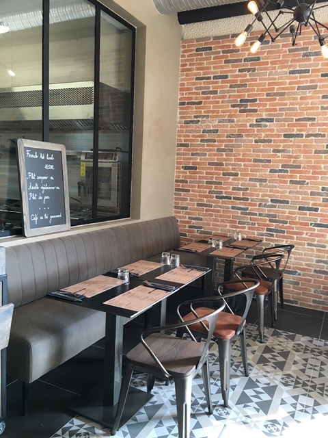 Celle-ci a su recréer une ambiance « bistrot industriel » en alliant matériaux bruts et nobles. Carreaux en ciment, acier galvanisé, briques, tout y est pour un total look inspiré du 19 eme siècle!