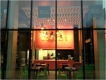 Par la Collina n’est ni un Bar à Pâtes, ni une Brasserie, mais une Trattoria… Ouvert depuis le 15 Mars, les clients adorent l’originalité de la cuisine et l’ambiance dans laquelle ils mangent. Les couleurs vives et la grande Baie vitrée donnent une dimension contemporaine avec un clin d’œil aux souvenirs familiaux d’antan italiens…
