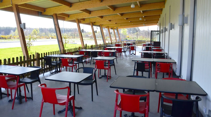 Une terrasse, abritée dans sa totalité, meublée de tables rétro associées à des fauteuils contemporains en résine vous accueille par tous les temps.