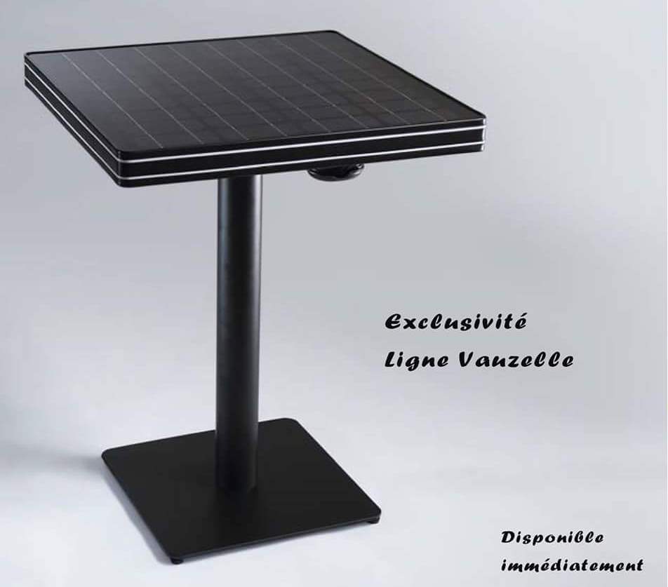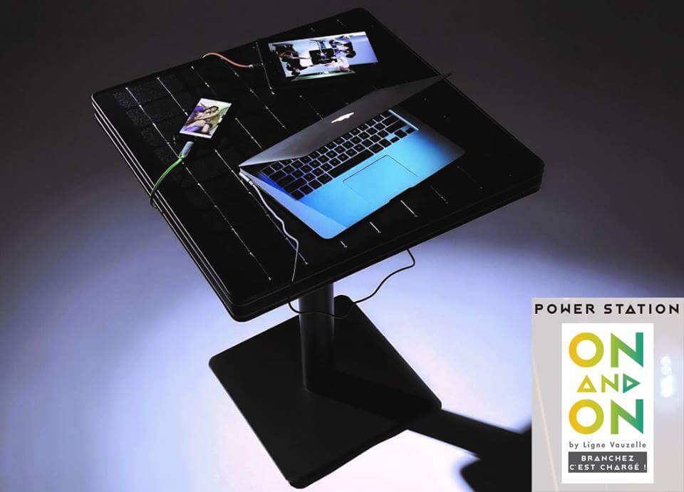 C’est une table design, résistante aux intempéries avec une connexion possibles pour plusieurs appareils portables en simultané.